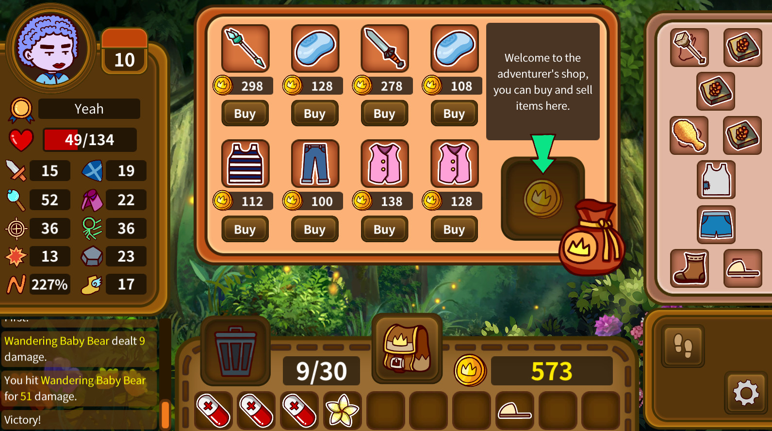 APP下载 大小:MB 下载:87次 冒险者与背包 独立游戏PVE回合制二次元 支 持:PC 分 类:休闲益智 评 分: 开发者:疯王子 下载量:87次 发 布:2022-10-17 手机扫码免费下载 #冒险者与背包截图 #冒险者与背包简介 游戏中,玩家扮演一个有着可以存放各种道具背包的冒险者,背包中的道具可以食用或者装备。人物本身没有升级等概念,变强全是靠装备道具或者食用来完成的。在冒险中战胜怪物可以获得新的道具,道具效果和怪物的强度会随着时间的推进,越来越高。到固定时间或是玩家死亡,游戏结束。 #冒险者与背包下载