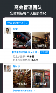 4、拍照、录像,自动同步到团队,自动生成考勤报表,提高团队管理效率。